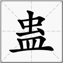 (1) (会意。从虫,从皿。本义: 人肚子里的寄生虫)