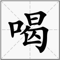 (形声。从口,曷声。( yè )本义:声音幽咽。如:嘶喝。又指饮。特指饮酒) 饮。北方称饮为喝 [drink]。如:喝水;喝茶;喝汤;喝咖啡