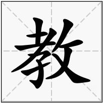(1) (会意。从攴( pū),从孝,孝亦声。“攴”,篆体象以手持杖或执鞭。在奴隶社会,奴隶主要靠鞭杖来施行他们的教育、教化。本义:教育,指导)