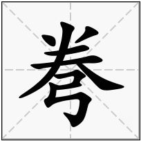 2、variant of 卷, curled up scroll; crossbow (arch.)