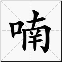 (1) (形声。从口,南声。本义:低语声。如:喃喃细语)