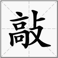 (1) (形声。从攴,高声。攴, pū,轻击。象手(又)拿小棍轻击的样子。本义:敲击,叩打)