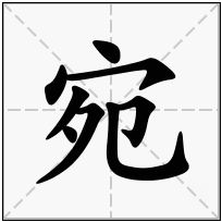 (1) (形声。从宀( mián),夗( yuàn)声。象屋里的草弯曲自相覆盖。本义:弯曲)