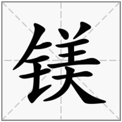 | 镁的拼音 | měi | 镁的繁体 | 鎂 | 镁的部首 | 钅 |