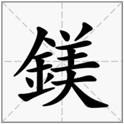 | 鎂的拼音 | měi | 鎂的繁体 | 鎂 | 鎂的部首 | 釒 |