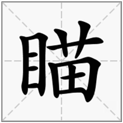 瞄是中国汉语力量的字,形容· 眼睛迅速地注视,迅速地看