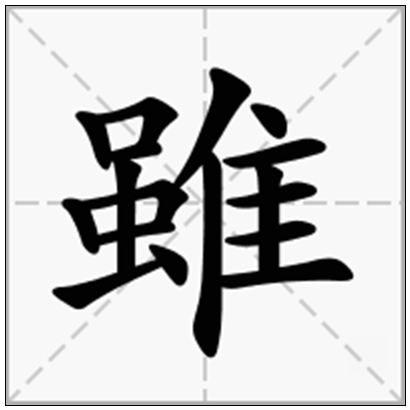 | 雖的拼音 | suī | 雖的繁体 | 雖 | 雖的部首 | 隹 |