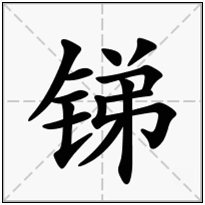 | 锑的拼音 | tī | 锑的繁体 | 銻 | 锑的部首 | 钅 |