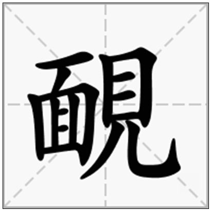 靦是中国的汉字,同“腼”。意思是从面见,见亦声。