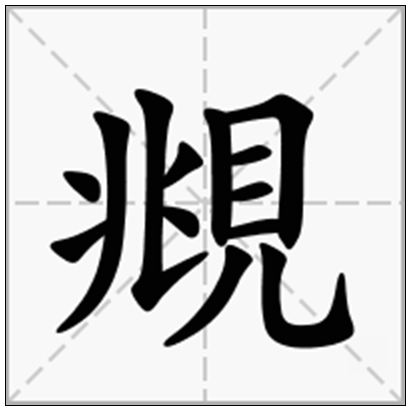 | 覜的结构 | 左右结构 | 覜的注音 | ㄊㄧㄠˋ、 | 覜的郑码 | vrlr |