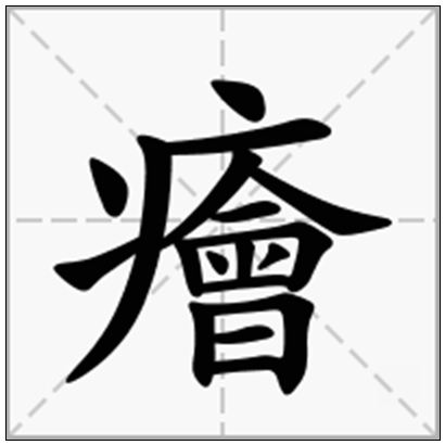 癐: CJK UNIFIED IDEOGRAPH-7650 :guài,guì,笔画数:18,部首:疒,笔顺编号:413413412524312511
