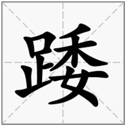 踒,意思是躅,踏踩,顿足,出自《广韵》。