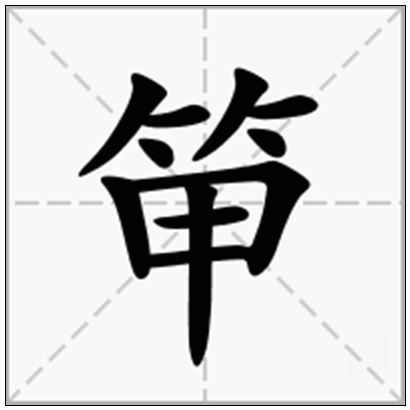 笚是一个汉字,解释为竹相击,古同“筪”,竹名, 古同“笝”,系船的竹索。