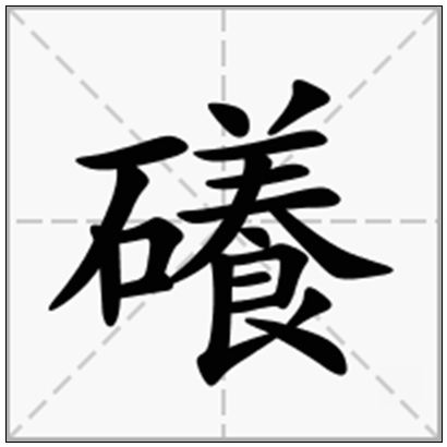 礢,是一个汉字,笔顺为横撇竖折横捺撇横横横撇捺捺折横横折撇捺。