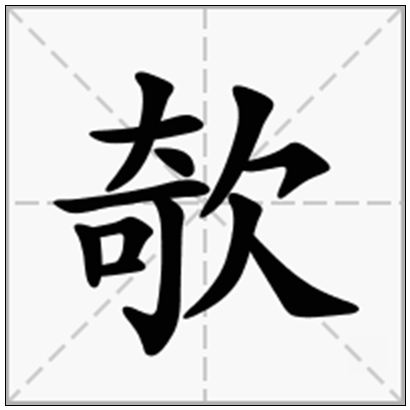 字义欹(字典中是“攲”) CJK UNIFIED IDEOGRAPH-6B39 yī qī ㄑㄧ 拼音: qī, 笔划: 12部首: 欠(支) 笔顺编号:134125 1235341、倾斜,歪向一边。2、容貌憔悴。3、通“倚"。斜倚,斜靠。4、古同“攲”:”吾闻宥坐之器者,虚则~。”原是一盛水的器物。北京故宫博物院里就陈列着一高45.5cm、长18.7cm、宽14cm的铜制器物。这器物有些与众不同,据说;它的样子像个插屏,底座上有一个框架。框架的中央吊挂着一个直径12cm、高14.7cm的杯状容器,杯状容器两边的乳钉形轴与框架内侧的针状轴衔接,这样,这个容器就可以在框架上沿一定方向转动。如果往容器中倒水,水倒入一半时,容器正好是垂直地吊挂;将水倒满后;容器却自动翻转,而把水全部倒出来了,之后,容器就又自动偏向一方静止下来。欹的字面意思是倾斜,原来就是不能一次性装满水的容器。