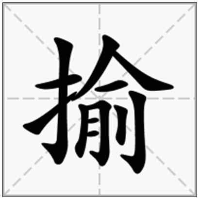 〈动〉(形声。从手,从俞,俞亦声。“俞”意为“捷径”、“就便”。“手”和“俞”联合起来表示“顺手抄物。”本义:顺手抄物)同本义 [draw forth;brandish]
