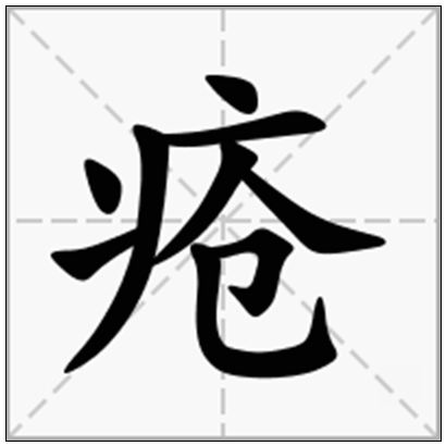 疮,汉字,意思是痈、瘫、疽、疖等的总称。