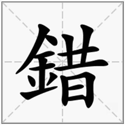 | 錯的拼音 | cuò | 錯的繁体 | 錯 | 錯的部首 | 釒 |