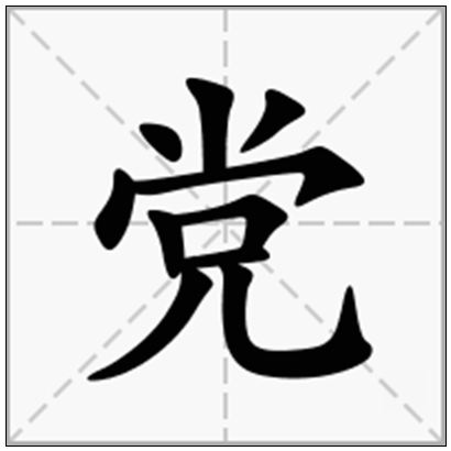 党(dǎng),从尚从黑。本义:非公开、暗地里、私下。《说文》不鲜也。又《周礼·地官·大司徒》五家为比,五比为闾,四闾为族,五族为党。《释名》五百家为党。党,长也。一聚之所尊长也。〈形〉(1) 形声。从黑,尚声。“党”、“黨”在古代是两个字,现在“党”是“黨”的简化字。简化字“党”,从儿(人,尚声)本义:晦暗不明。“党”指集团时,在古代一般只用于贬义,与现代汉语不同。(2) 不鲜明 [not bright]党,不鲜也。——《说文》有政党、偏袒之意,旧时指亲族。党姓的望族居住在冯诩(今天的陕西省境内)。如今随着网民数量的壮大、各类网民已经远离了分散的网络生活状态、各类志同道合的网民走到了一起。这便是“党”形成的基础。同时“党”也是指具有相同志趣或做着相同事情或有相同点的一类人。
