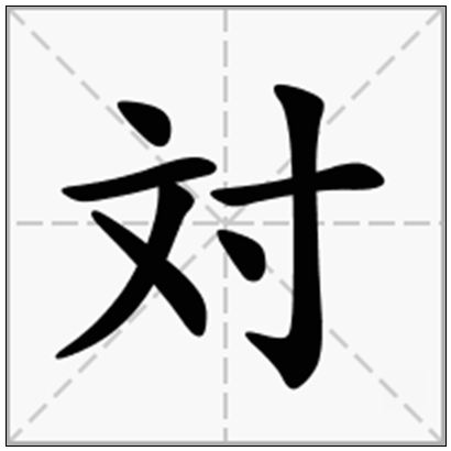 | 対的拼音 | duì | 対的繁体 | 対 | 対的部首 | 寸 |