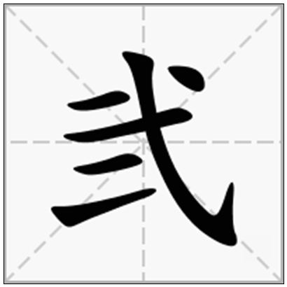 弐 èr, ㄦˋ部首: 弋, 部首笔画: 3, 总笔画: 6,笔顺:111154,五笔:gafd,仓颉:mpmm,郑码:ahbd,四角:13140,