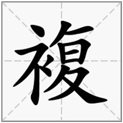 | 複的拼音 | fù | 複的繁体 | 複 | 複的部首 | 衤 |