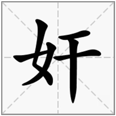 gān。干犯;请求;乱。jiān。通“奸”;自私。奸是一个汉语汉字,《说文》解释为“私”“窃”的意思。常言道:“三个女人一台戏”,这个字充满了色情和暧昧的情调。《说文》:“奸,犯婬也。从女,从干,干亦声。”