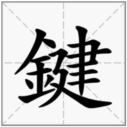 | 鍵的拼音 | jiàn | 鍵的繁体 | 鍵 | 鍵的部首 | 釒 |