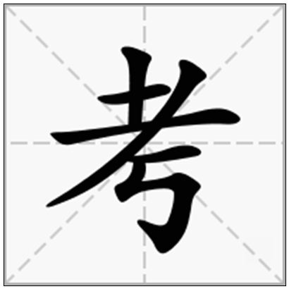 | 考的拼音 | kǎo | 考的繁体 | 考 | 考的部首 | 耂 |