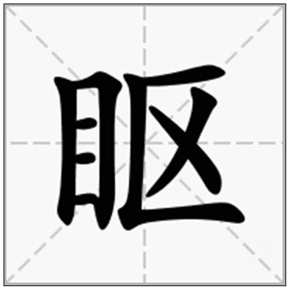 眍是形声字,目为形,区(kòu)为声。基本字义是:眼睛深陷的样子。可以组成的词语有:眍?(kōu lóu)、眍(kōu dōu)等。