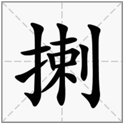 拼音:là,lá,笔画:12,释义;古同“攋”,毁裂;使开裂;〔~子〕方言,玻璃瓶。