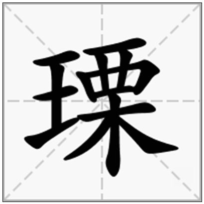 瑮,读音 lì,汉字,指玉上纹彩排列有序的样子。