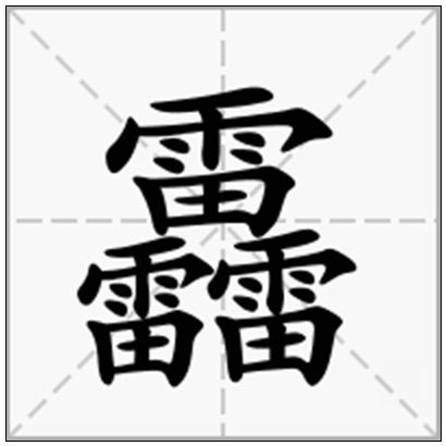 靐,汉字生僻字,雷声的意思。自“雷”人在网络流行后,“靐”又被应用到网络用语,衍生为很“雷”的意思。近几年的网络流行字还有囧、?、兲、烎、巭、氼等。