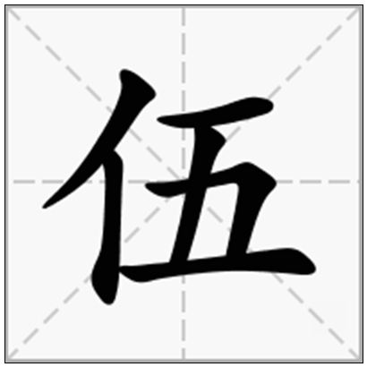 | 汉字 | 伍 | 拼音 | wǔ |